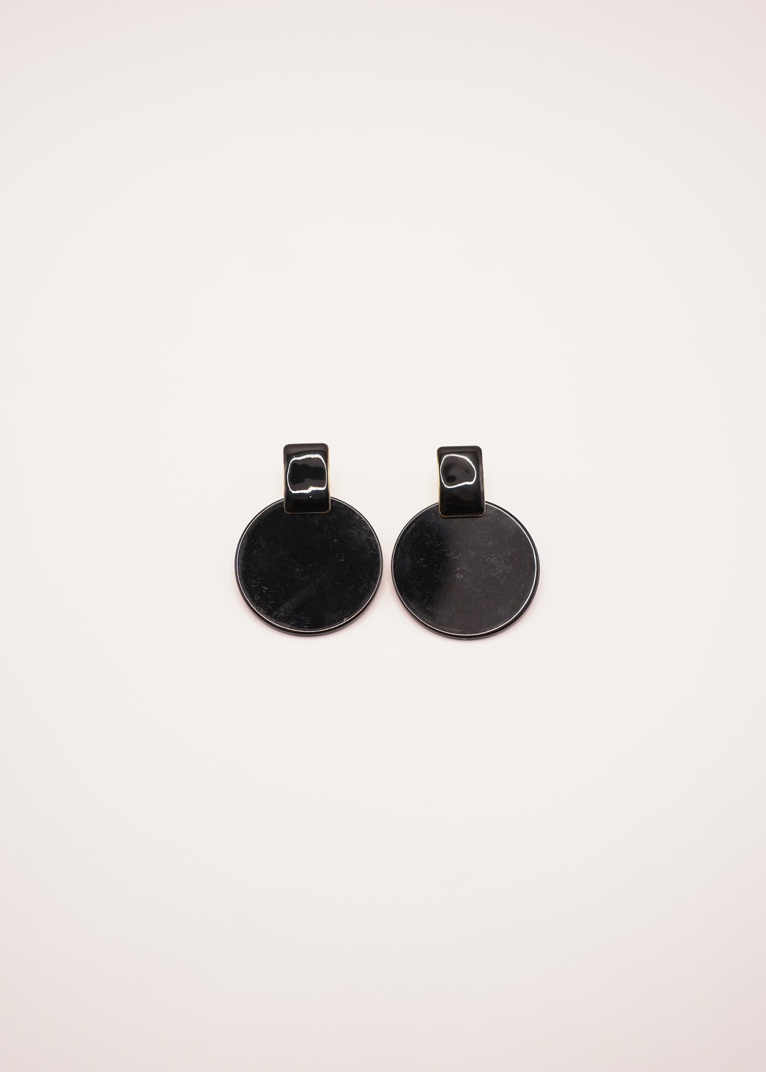 Boucles d’oreilles en résine noire et laiton doré à l’or fin 24 carats.