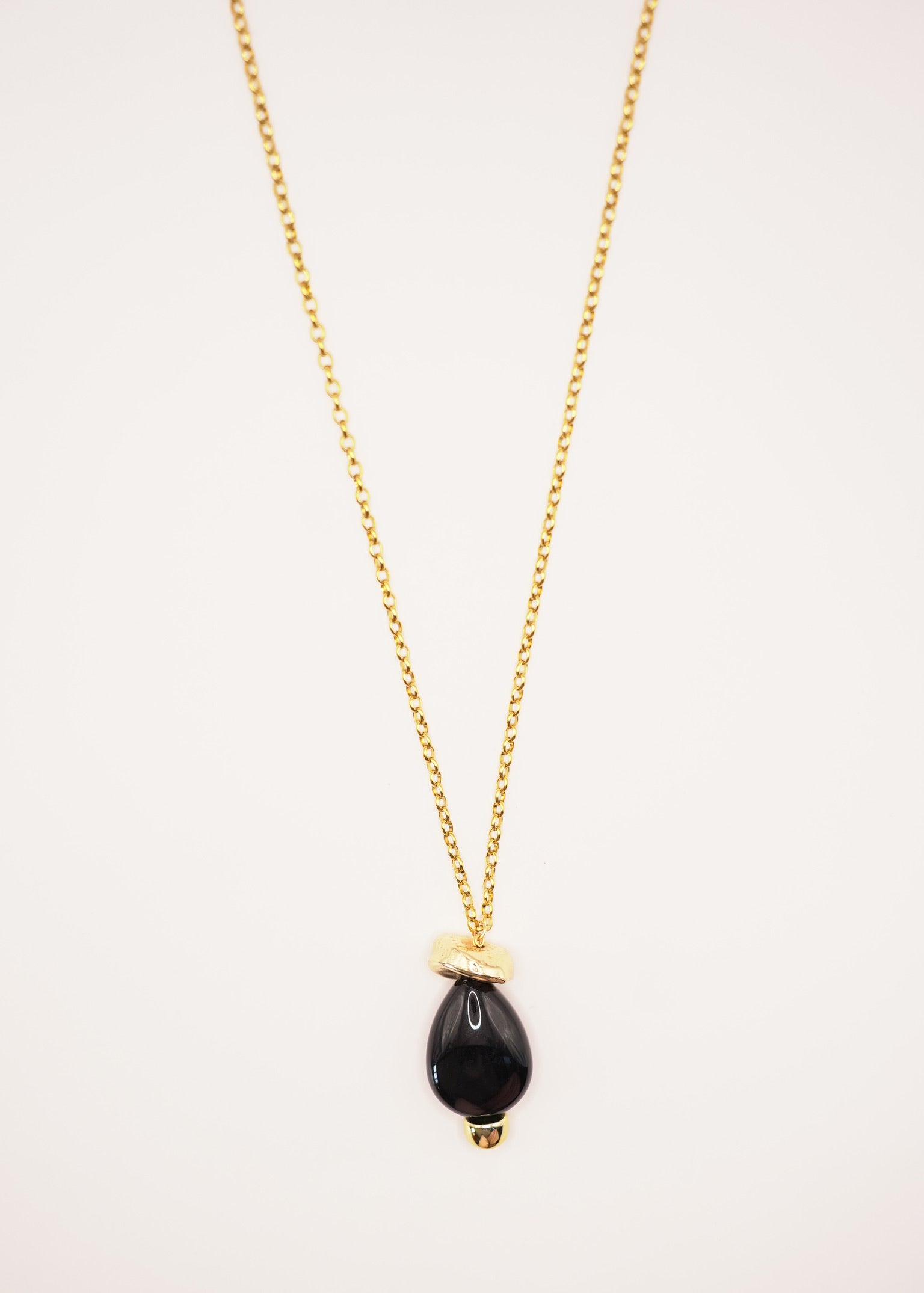 Sautoir en laiton doré à l’or fin 24 carats et résine.