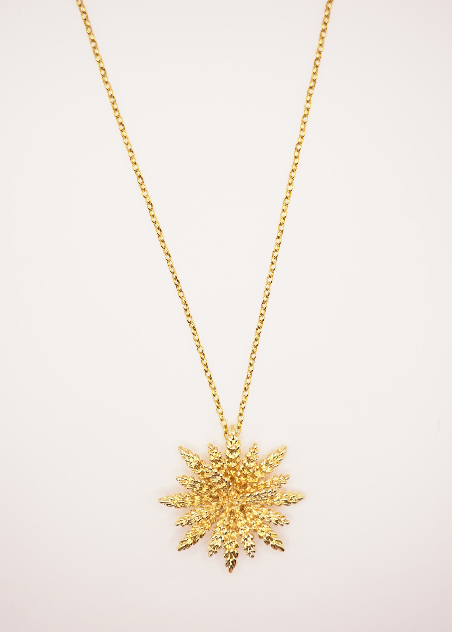 Sautoir en laiton doré à l’or fin 24 carats. Composé d’une chaîne et d’une broche. Possibilité de porter la chaîne seule ou la broche seule.